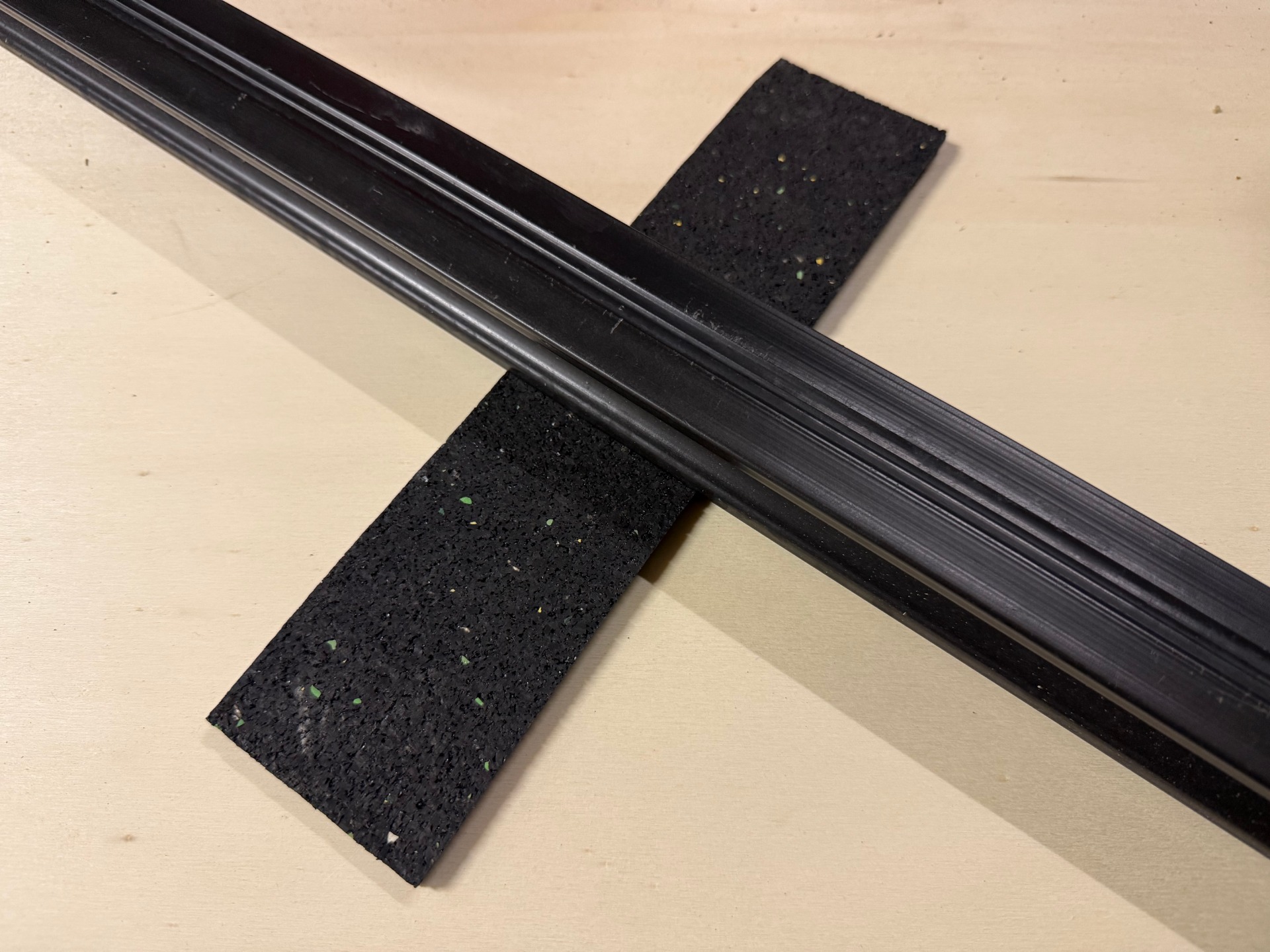Gumová podložka je nedílnou součástí každé terasy. Slouží pro základní podložení nosných profilů. Zabrání se tím nepříjemnému klapání nosného profilu o pevný podklad. Zároveň poslouží k dorovnání drobných nerovností.